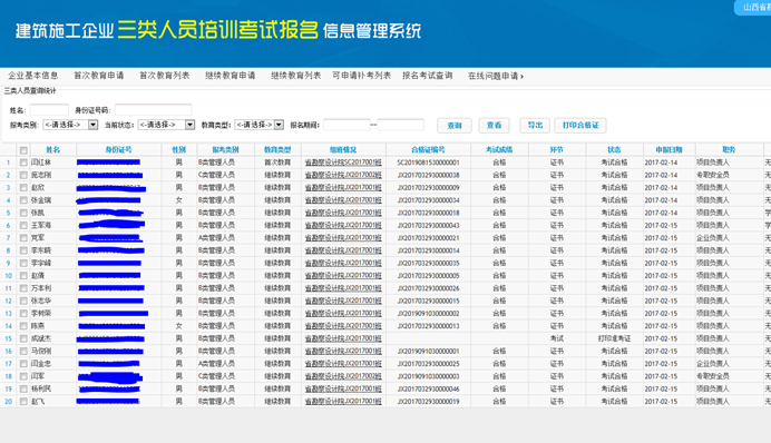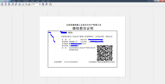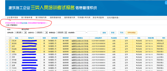 考试合格,并有合格证编号的人员信息,可选中后,点击 打印合格证,完成打印。合格证打印时可以单选也可以多选。